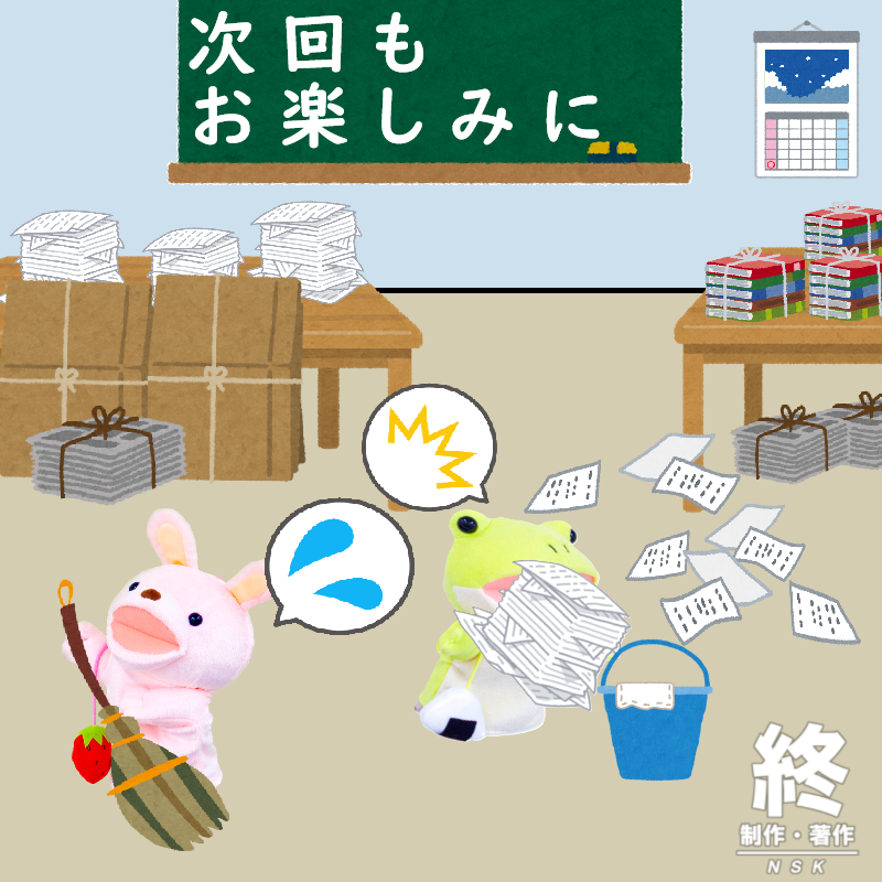 かえるくん、上手く活舌回ってないわよ。医療ソーシャルワーカーよ!(かえるの舌ってとっても柔らかいはずだったわよね?)