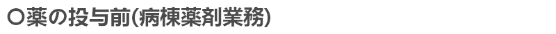 まずは投与前のチェック。患者さんやご家族とお話をして、今飲んでいる薬、今までの病気やアレルギー、飲酒・喫煙など生活習慣について確認するよ。