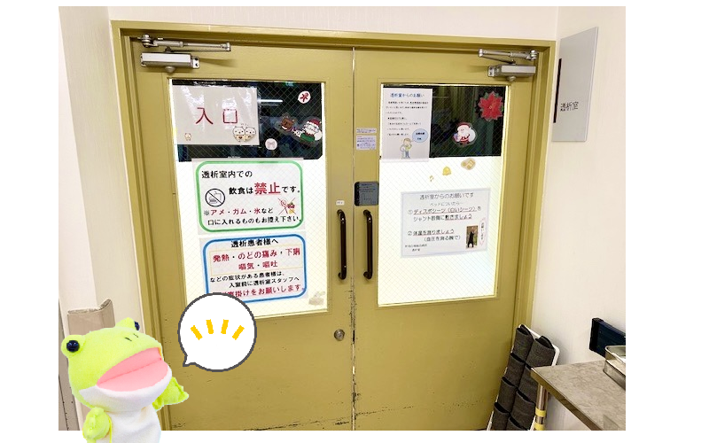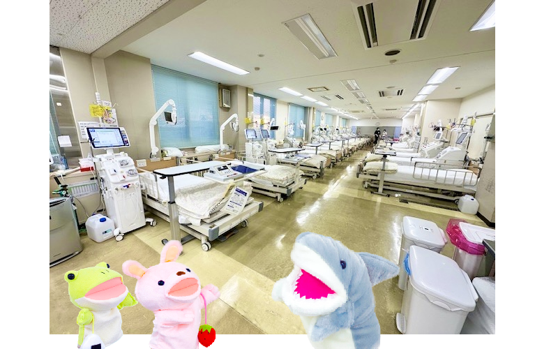 かえるくん、なかなかすごいところに来たね!ここは、「透析室」だよ!
